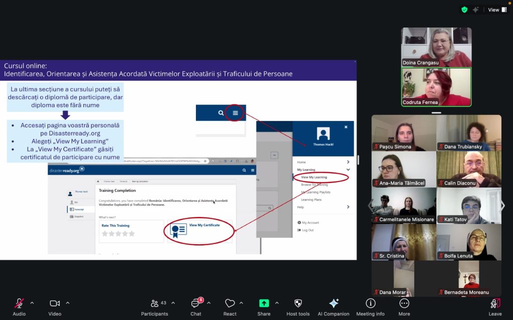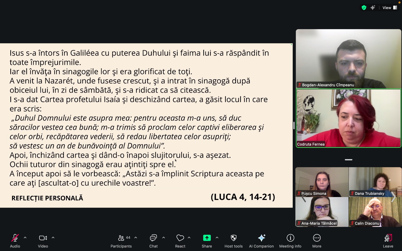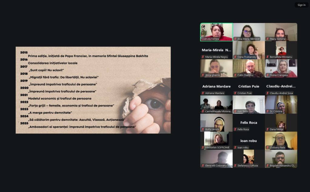 În seara de 8 februarie 2026, cu ocazia Zilei Mondiale de Rugăciune și Reflecție împotriva Traficului de Persoane, a avut loc o întâlnire online care a reunit participanți din mai multe colțuri ale țării pentru un timp comun de informare, rugăciune și dialog.